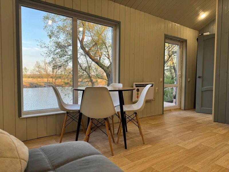 Новый туристический кемпинг расположен на берегу озера и состоит их трех модульных домов современного типа «барнхаус» с панорамными окнами. Они вмещают до 12 человек.