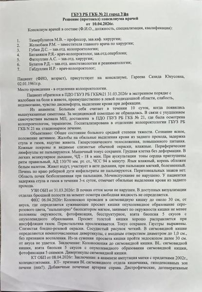 С разрешения пациентки редакция публикует заключение врачебного консилиума: