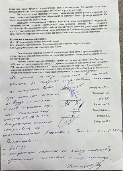Кстати, со слов пациентки, в больнице утром проводили консилиум, где, вопреки утверждениям официальных лиц минздрава РБ, врачи-хирурги и представители кафедры БГМУ настаивали на оперативном лечении из-за опасения рецидива развития повторной непроходимости кишечника и повторного кровотечения.