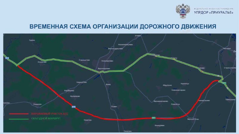 Речь идет об участке трассы в обход сел Исаметово, Верхнеяркеево, Лаяшты, Ишкарово, Асяново в Дюртюлинском, Илишевском и Чекмагушевском районах. На этом участке дороги специалисты будут устанавливать автоматическую систему управления дорожным движение и проводить пуско-наладочные работы. Объездной маршрут на период ограничений организовали по старому направлению трассы М-7.